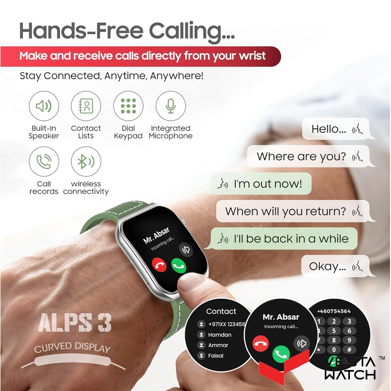 | قابلیتها | دارای صفحه نمایشگر خمیده - امکان برقراری و رد تماس - پشتیبانی از زبان انگلیسی، فارسی، عربی و هندی - تشخیص ورزش - بررسی فشار خون، ضربان قلب و سطح اکسیژن SpO2 - اطلاعات آب و هوای لحظهای |
