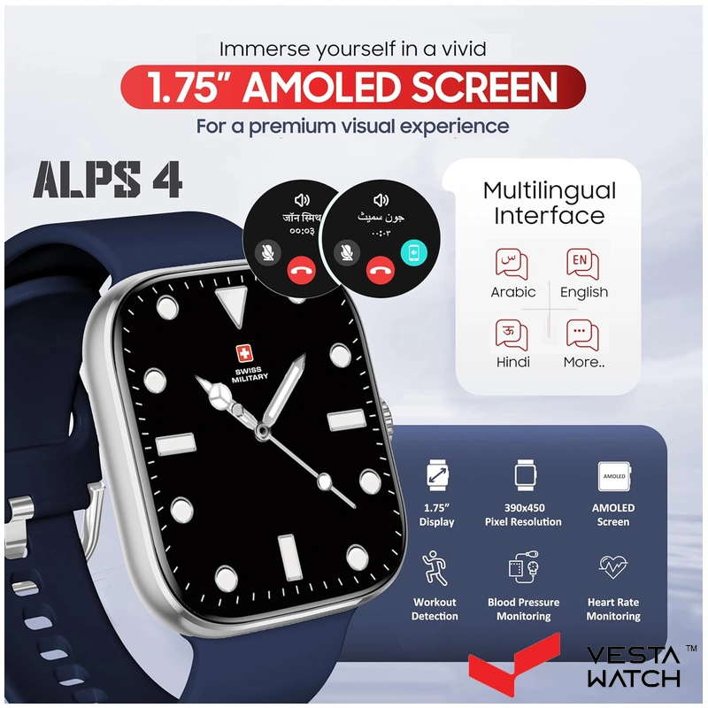 ساعت مچی هوشمند سوئیس میلیتاری SWISS MILITARY مدل SM-WCH-ALPS4-SILF-BLUSSS