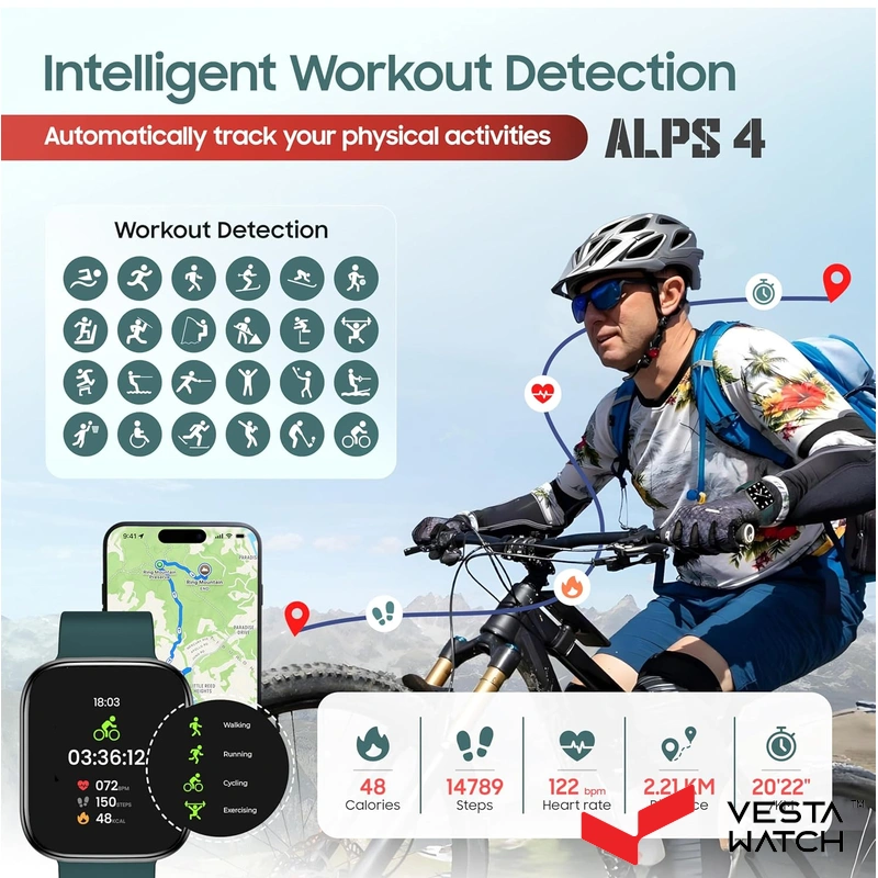 ساعت مچی هوشمند سوئیس میلیتاری SWISS MILITARY مدل SM-WCH-ALPS4-SILF-GRNS