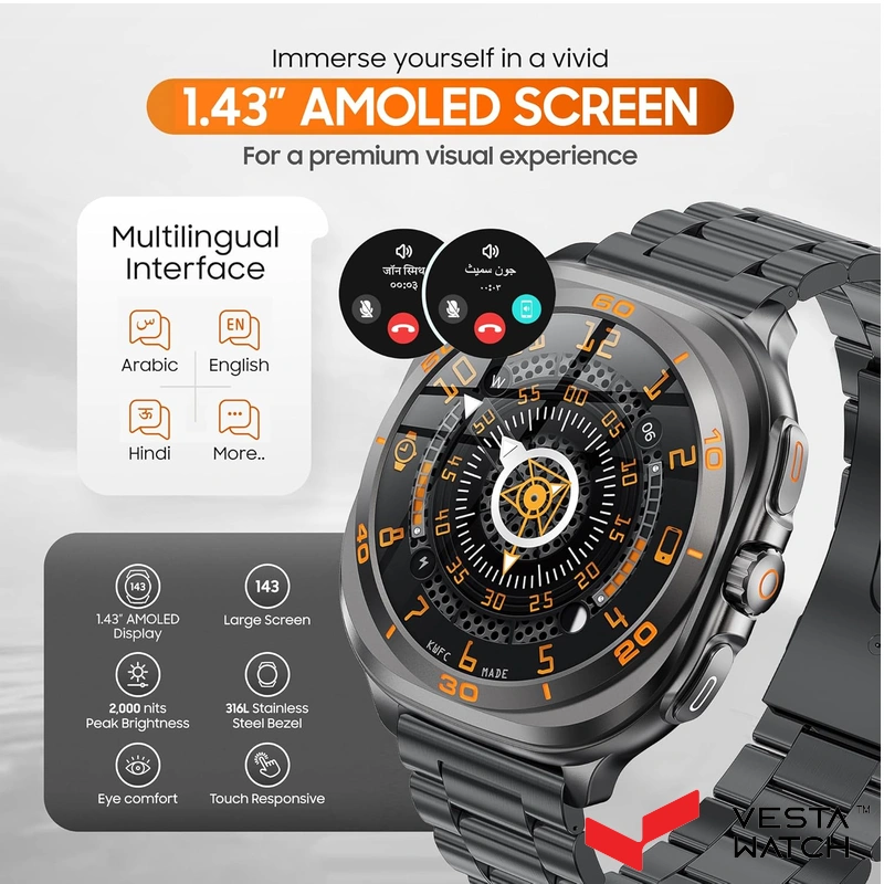 | قابلیتها | امکان برقراری و رد تماس - پشتیبانی از زبان انگلیسی، فارسی، عربی و هندی - تشخیص ورزش - بررسی فشار خون، ضربان قلب و سطح اکسیژن SpO2 - اطلاعات آب و هوای لحظهای |