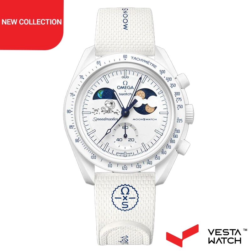 ساعت مچی امگا سواچ مدل MISSION TO EARTHPHASE - MOONSHINE GOLD SO33W701L