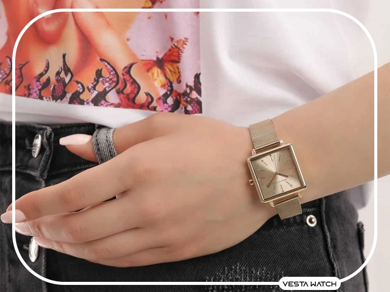 در صورتی که علاقه زیادی به مدلهای صفحه مربعی دارید، ساعت زنانه آرمانی اکسچنج AX5801 یک گزینه استثنایی خواهد بود. این محصول از رنگ طلایی روی بدنه و بند خود استفاده کرده و همین موضوع موجب شده تا درخشندگی آن چندین برابر شود. ساعت مچی زنانه آرمانی اکسچنج ARMANI EXCHANGE مدل AX5801 از شیشه کریستال ضد خش، موومنت کوارتز، بند حصیری و طراحی ساده و مینیمال بهره میبرد. به همین خاطر با هر استایلی سازگار خواهد بود. قطر 30 میلیمتری و ضخامت 7 میلیمتری قاب در کنار عرض 16 میلیمتری بند، این محصول را گزینهای عالی برای مچ ظریف بانوان کرده است.