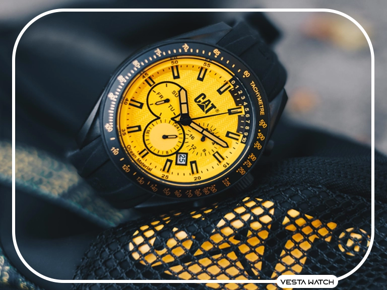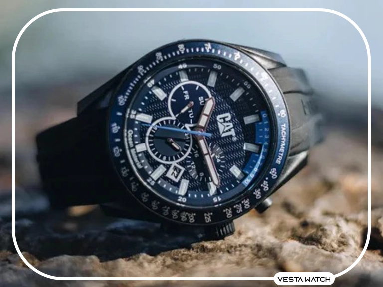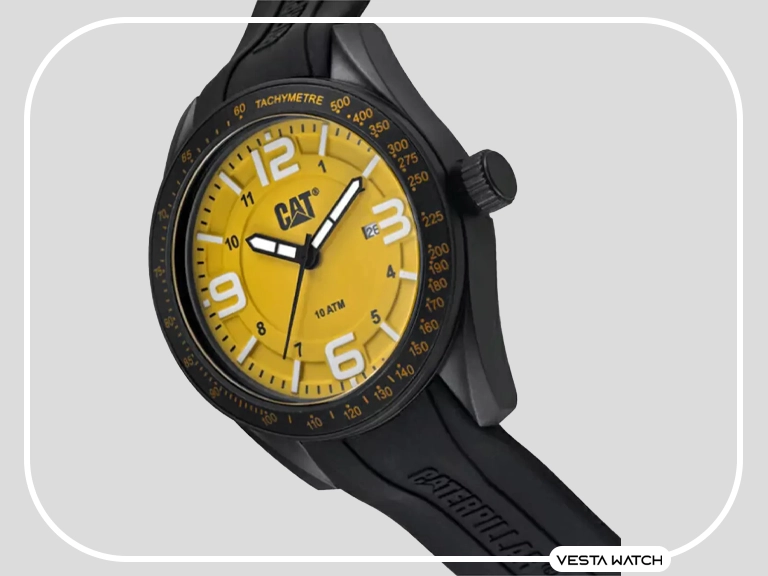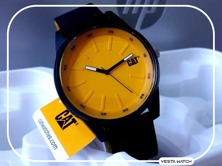 - کیفیت متریال: در اکثر ساعتهای مچی کاترپیلار اصل، بدنه از استیل ضدزنگ یا پلیکربنات مقاوم ساخته شده و بندها از چرم طبیعی یا سیلیکون باکیفیت هستند. کیفیت متریال در نگاه اول قابل تشخیص است و احساس سنگینی و دوام خاصی به ساعت میدهد.